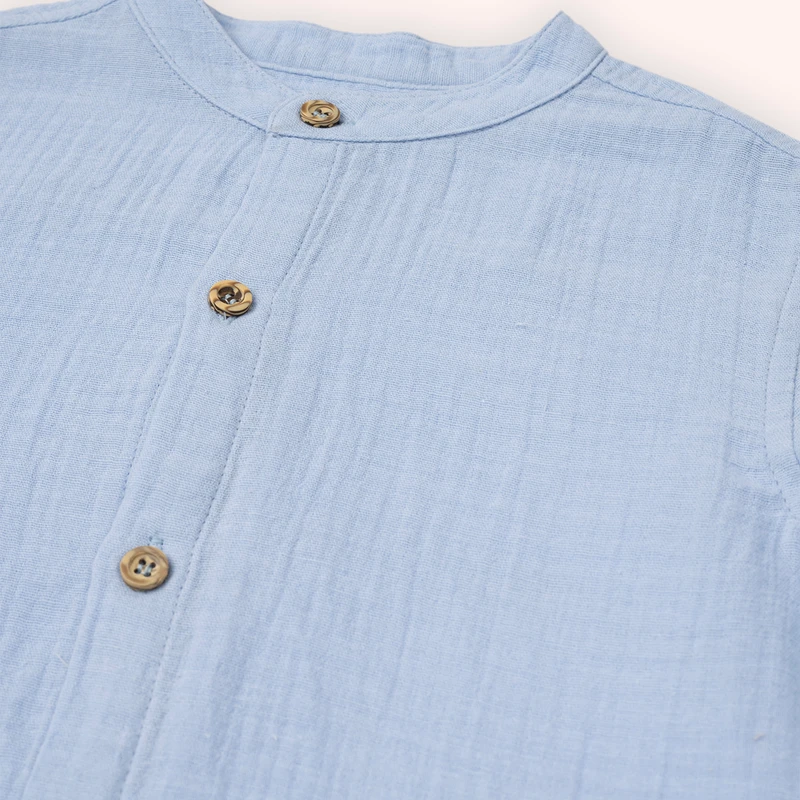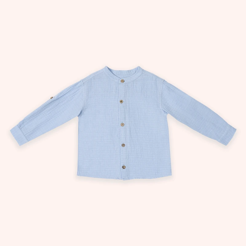 Long Sleeve Muslin Shirt-Blue-7-8 Yrs