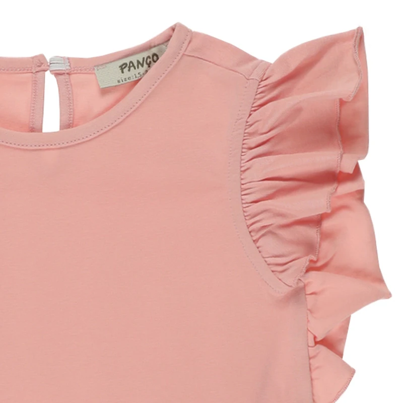 Crew Neck Ruffle T-shirt-Salmon-1.5-2Yrs