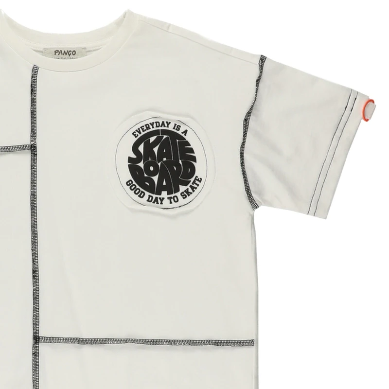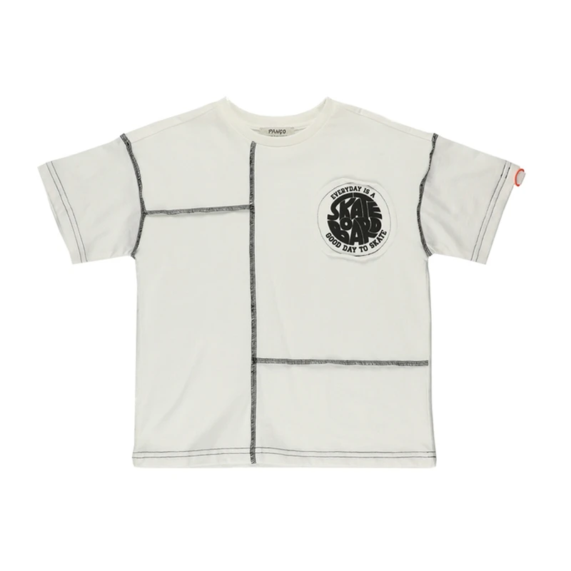 T-Shirt With Stitching Details-White-13-14 Yrs