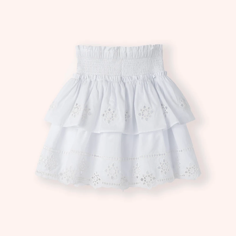 Waist Pleated Cutout Skirt-White-6-7 Yrs